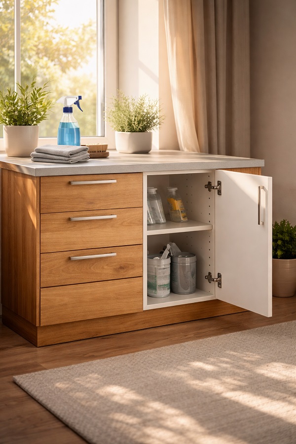 Един реален пример: нов шкаф под мивка изглежда перфектно, но след седмица се появява лека миризма на влага. Причината често не е мебелта, а капка-две от сифона, които тихо мокрят дъното. Решението е елементарно – проверка за теч и подсушаване веднага. Ако направите това още в началото, шкафът остава като нов години наред.
