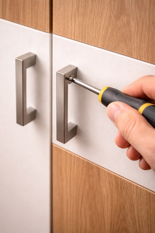 Разхлабена дръжка? Това е знак, че винтът иска внимание, не че мебелът е лош. Стягането отнема минута, но пази фронта от излишно „играене“ и износване.