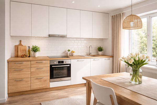 Представете си кухня с красиви фронтове и плавно затваряне. Първите месеци всичко е тихо и гладко, сякаш вратите се движат по въздух. После идва „реалният живот“ – пара от тенджерата, мокра гъба, малко разлято кафе, една бърза забърсване с груба кърпа… и постепенно блясъкът избледнява. Истината е, че почти всичко това се предотвратява с две-три прости правила.