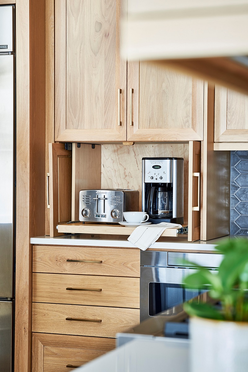 Скрита кухненска станция за малки уреди с повдигаща врата
