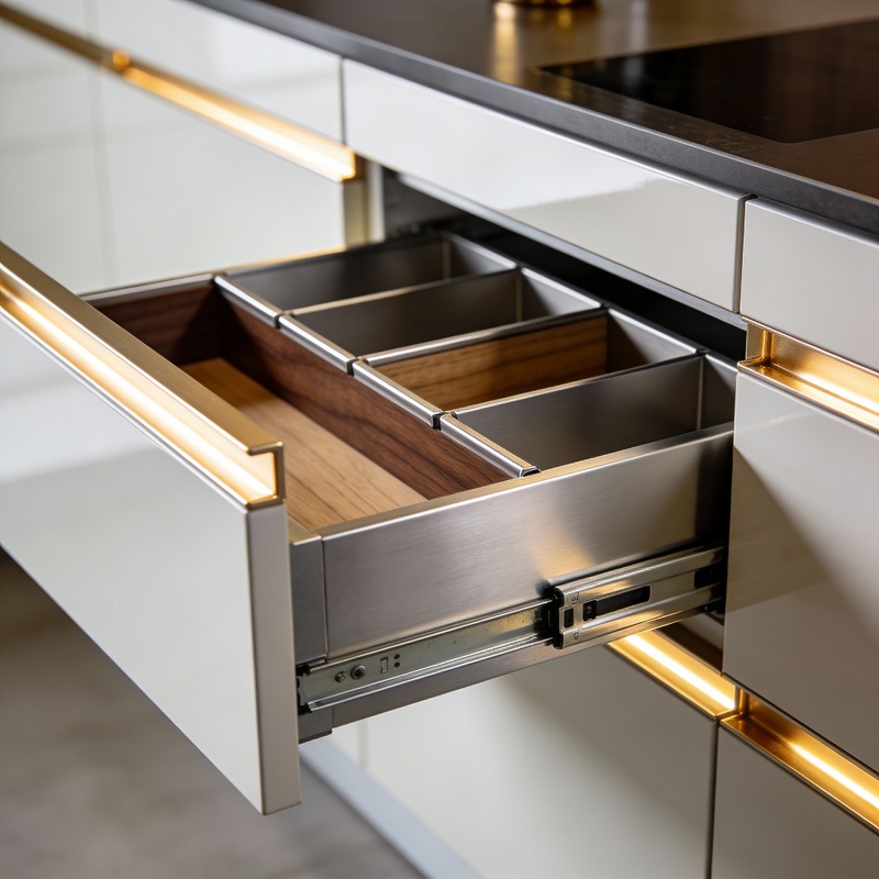 Меки механизми, плавно затваряне, стабилни водачи, добре оразмерени врати — това прави кухнята „умна“, защото я прави спокойна. Тишината в добре направените кухненски модули е онзи тип качество, което не се рекламира, а се усеща всеки ден.