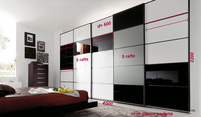 Гардероб от ПДЧ. Вътрешно разпределение лост за къси дрехи, лост за дълги дрехи и рафтове. Механизъм горно водене. Размери 400/220/60.