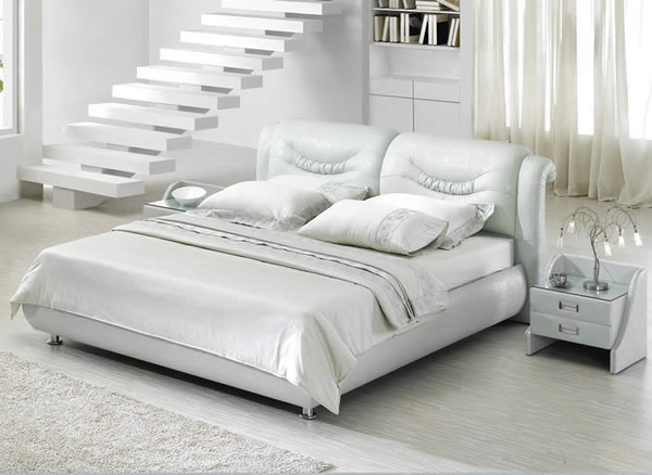Лукс и съвършенство – тапицирана спалня в бяла кожа по проект. Елегантност в бяло – стил и комфорт в хармония