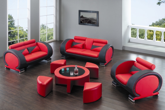 Съчетава контрастна комбинация от наситено червено и графитено черно – смела палитра, която придава енергия и модерен акцент на всяко пространство. Тапицерията е от висококачествена еко кожа, устойчива на износване, с фина текстура, която подчертава луксозния характер на модела.