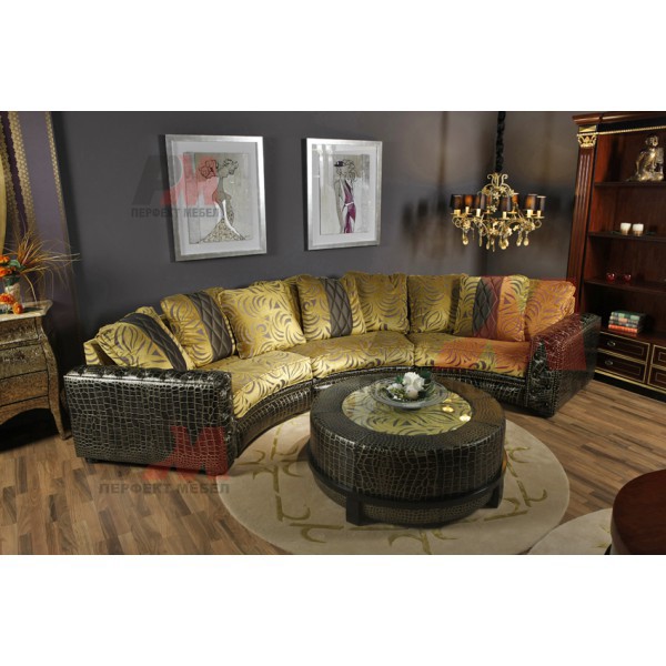 Пред нас се разгръща впечатляваща холна композиция, създадена като сцена от стар аристократичен дом. Формите са щедри, масивни и уютни, сякаш поканени от друга епоха, но украсени с модерната прецизност на съвременния дизайн.